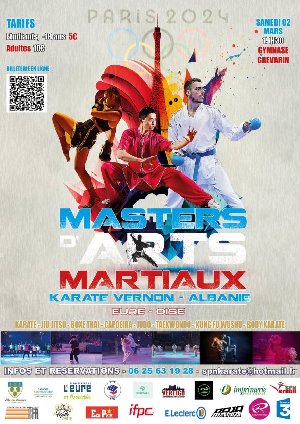 Le samedi 2 mars 2024, M. Slimani organisera le prestigieux Gala d’Arts Martiaux, avec la participation de la classe Première Baccalauréat Professionnel Métier de l’Accueil. L’événement se tiendra au gymnase du Grevarin (27200 Vernon) et débutera à 19h30. Les tarifs d’entrée sont de 5€ pour les moins de 18 ans et de 10€ pour les plus de 18 ans. Au programme, une variété de sports tels que la Boxe Thaï, le Jiu Jitsu, le Judo et la Capoeira ! En point d’orgue de la soirée, un combat de Karaté opposera le SPN Vernon Karaté à l’Équipe Nationale Albanaise de Karaté ! Consultez l’affiche jointe pour tous les détails concernant cet événement. Nous espérons vous compter nombreux parmi nous ce jour-là !