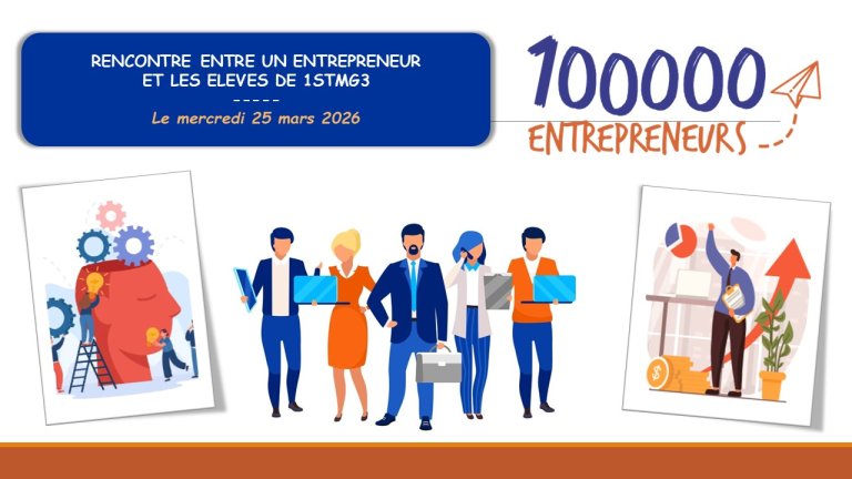 Mis à jour : mars 2026Le mercredi 25 mars 2026, les élèves de 1STMG3 ont pu bénéficier d’une rencontre avec un professionnel, en collaboration avec l’Association 100 000 entrepreneurs. Retrouvez le détail de cette rencontre encourageant les ambitions de chacun ! C’est avec grand plaisir que les élèves de la classe de 1STMG3, placés sous la responsabilité de leur professeur de Management, Madame PLAISANT-LEMOUCHOUX, ont pu profiter d’une rencontre avec un entrepreneur, gérant une équipe de plusieurs (…) -